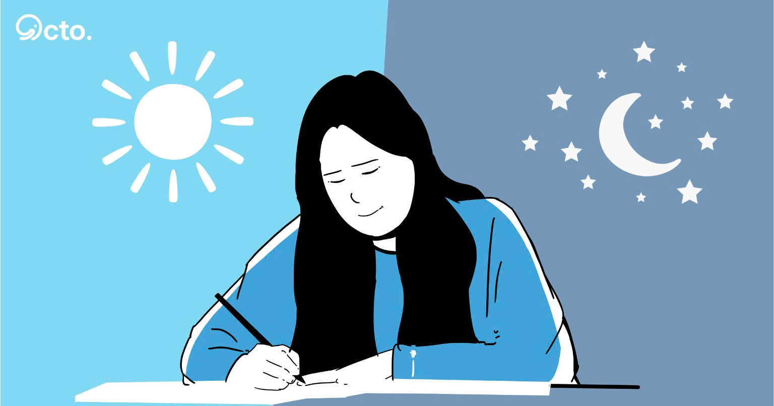Research shows that studying at the same fixed time can stimulate the brain to adjust and form habits. When you study at a time that feels comfortable and is when you perform best, it becomes easier and more effective to absorb knowledge. The ideal time may vary for each person–it could be early in the morning, in the afternoon, or during a quiet evening. If you want to find out which chronotype you belong to, check out this article: https://octo.vn/-bai-viet-tim-hieu-ve-chronotype-ban-thuoc-nhom-thoi-gian-sinh-hoc-nao-phan-1-.html