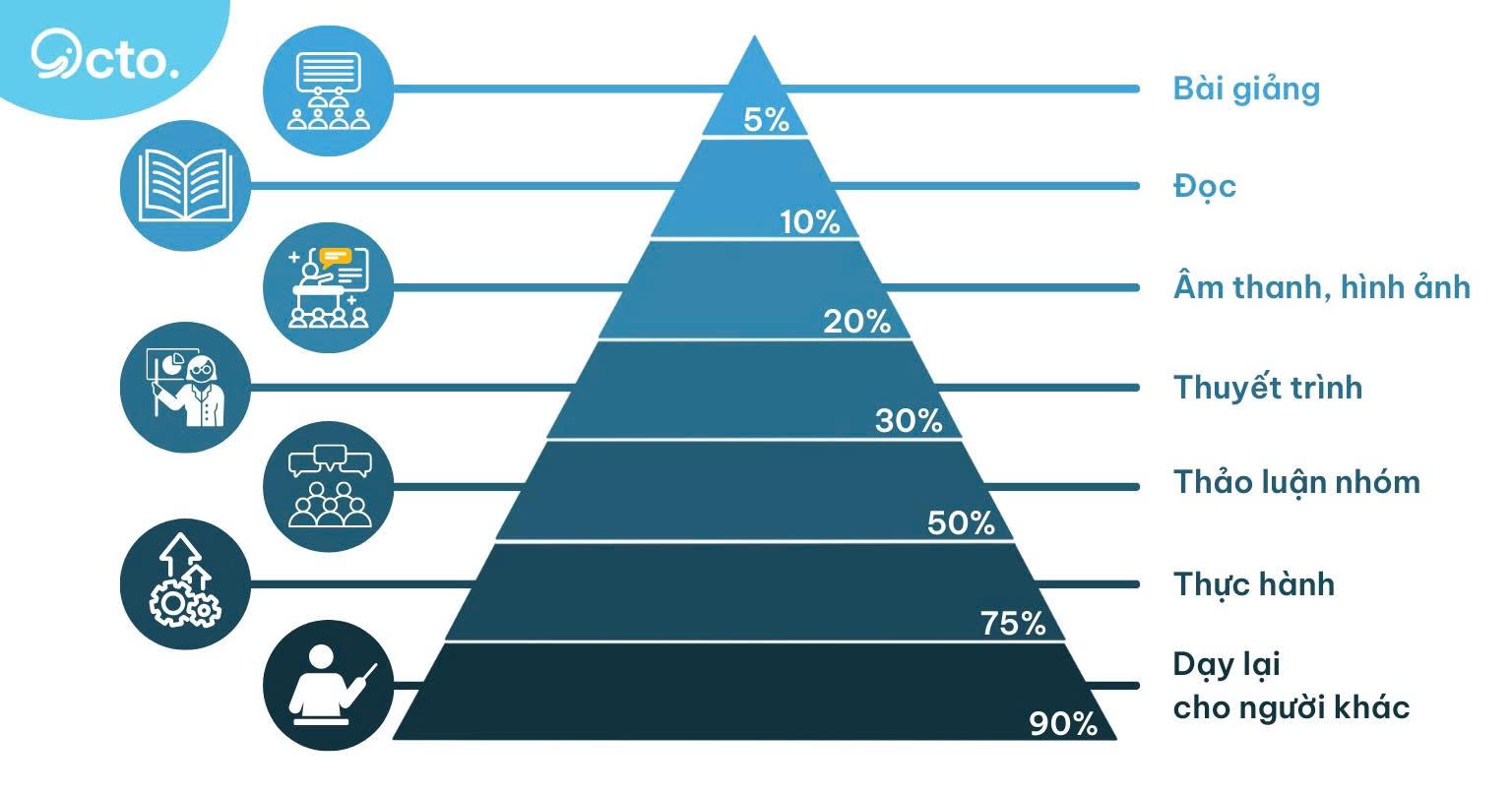 Did you know that the learning methods we apply daily are all part of the Learning Pyramid? This model has been widely adopted as it evaluates the effectiveness of various learning techniques and compares the level of knowledge retention among learners. If you want to delve deeper into the Learning Pyramid and learn how to apply it effectively, let’s find out it with Octo.!