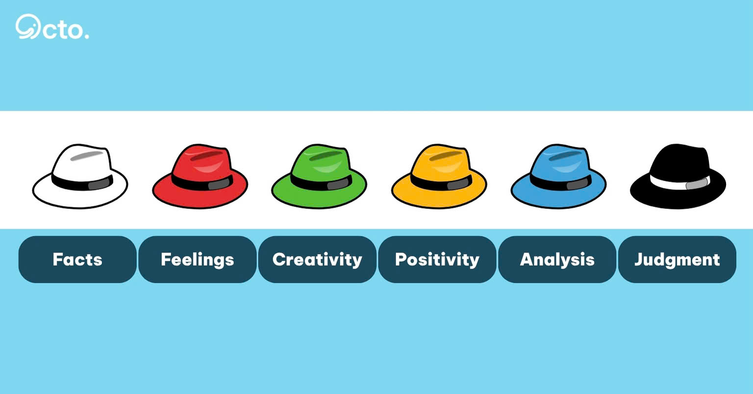 Mô hình 6 chiếc mũ tư duy (six thinking hats) là một phương pháp giúp nâng cao khả năng tư duy và ra quyết định với cách phân tích độc đáo. Bằng cách chia quá trình tư duy thành sáu chiếc mũ với màu sắc khác nhau, mỗi chiếc mũ đại diện cho một góc nhìn riêng biệt. Nhờ đó, người dùng có thể xử lý vấn đề từ các khía cạnh khác nhau. Hãy cùng Octo. tìm hiểu chi tiết hơn ở bài viết này nhé!