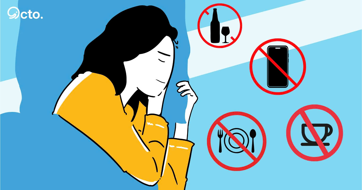 + Avoid stimulants: Don’t consume caffeine, strong tea, or energy drinks. These substances have long half-lives and can stay in your bloodstream for hours. Stop using them at least 6–8 hours before bedtime.